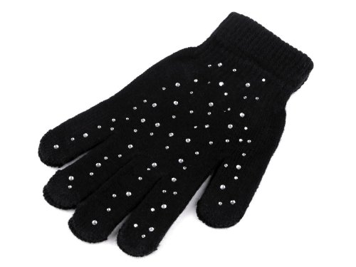 Pletené rukavice ozdobené lesklými kamienkami sú ideálnym doplnkom do sychravého jesenného a zimného počasia. Sú pružné, z jemnej pleteniny. Ruky sa skvele prispôsobia, navyše sa výborne naťahujú. Vďaka pružnému lemu okolo zápästia pevne držia - neskĺzavajú. Šírka je meraná na voľne položených rukaviciach uprostred (bez palca).