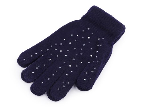 Pletené rukavice ozdobené lesklými kamienkami sú ideálnym doplnkom do sychravého jesenného a zimného počasia. Sú pružné, z jemnej pleteniny. Ruky sa skvele prispôsobia, navyše sa výborne naťahujú. Vďaka pružnému lemu okolo zápästia pevne držia - neskĺzavajú. Šírka je meraná na voľne položených rukaviciach uprostred (bez palca).