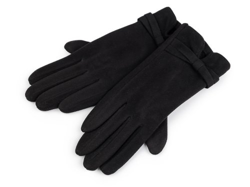 Dámske rukavice s ozdobnou manžetou sú veľmi elegantné. Teplý pružný úplet sa ruky skvele prispôsobí. Vnútri je jemný plyš, ktorý je veľmi príjemný na dotyk. Tento módny doplnok sa hodí do zimy alebo do chladnejšieho jesenného počasia. Na ukazováku pravej aj ľavej ruky je vyšitý kvet, vďaka ktorému môžete ovládať dotykové prístroje - mobil, tablet, bankomat a pod. Šírka je meraná na voľne položených rukaviciach uprostred (bez palca).