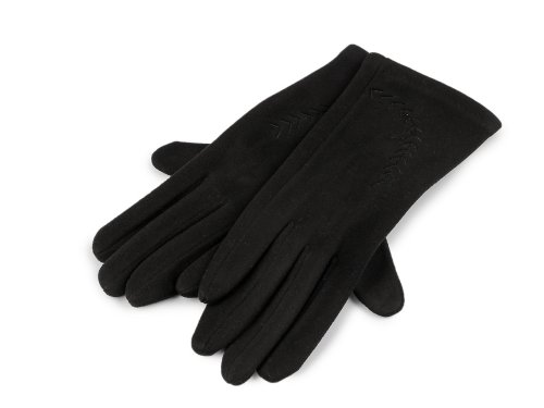 Elegantné dámske rukavice sú na vrchnej časti ozdobené výšivkou vetvičky. Výborne pružia, vďaka tomu sa perfektne naťahujú. Materiál je veľmi príjemný na dotyk, pripomína semiš, vo vnútri majú rukavičky jemný plyš. Hodí sa do miernej zimy alebo do chladnejšieho jesenného počasia. Na ukazováku pravej aj ľavej ruky je vyšitý kvet, vďaka ktorému môžete ovládať dotykové prístroje - mobil, tablet, bankomat a pod. Tieto rukavice vám poskytnú štýl a pohodlie na každý deň. Šírka je meraná na voľne položených rukaviciach uprostred (bez palca).
