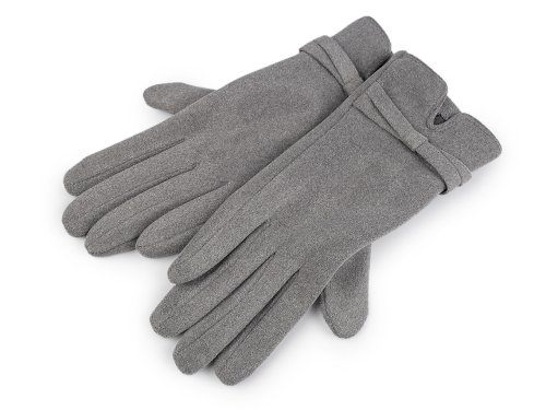Dámske rukavice s ozdobnou manžetou sú veľmi elegantné. Teplý pružný úplet sa ruky skvele prispôsobí. Vnútri je jemný plyš, ktorý je veľmi príjemný na dotyk. Tento módny doplnok sa hodí do zimy alebo do chladnejšieho jesenného počasia. Na ukazováku pravej aj ľavej ruky je vyšitý kvet, vďaka ktorému môžete ovládať dotykové prístroje - mobil, tablet, bankomat a pod. Šírka je meraná na voľne položených rukaviciach uprostred (bez palca).