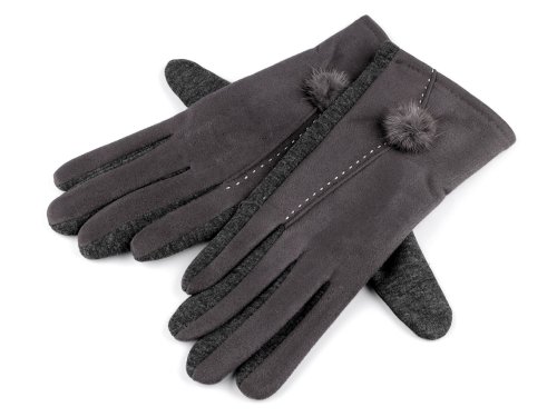 Elegantné dámske rukavice zdobí pravá kožušinka. Rukavice sú jemne pružné. Povrch rukavíc pripomína brúsenú kožu. Spodná strana je z úpletu. Vnútri majú jemný plyš, ktorý je veľmi príjemný na dotyk. Hodí sa do miernej zimy alebo do chladnejšieho jesenného počasia.