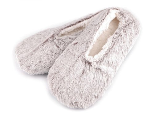 Dámske balerínky sú skvelé ako domáca obuv. Sú hebučké, [z vrchnej strany majú umelú kožušinu], vo vnútri je teplá chlpatá podšívka, ktorá verne imituje vlnu. Protišmykové gumové bodky na chodidle zabránia pošmyknutiu. Upozorňujeme zákazníkov, že zloženie na štítkoch sa môže líšiť, materiál je akryl, polyamid a polyester. [Vnútorná dĺžka pri veľkosti 35-38 je 23 cm, pri veľkosti 39-42 je 26 cm.]