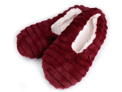 Dámske balerínky sú skvelé ako domáca obuv. Sú hebučké, [z vrchnej strany majú umelú kožušinu], vo vnútri je teplá chlpatá podšívka, ktorá verne imituje vlnu. Protišmykové gumové bodky na chodidle zabránia pošmyknutiu. Upozorňujeme zákazníkov, že zloženie na štítkoch sa môže líšiť, materiál je akryl, polyamid a polyester. [Vnútorná dĺžka pri veľkosti 35-38 je 23 cm, pri veľkosti 39-42 je 26 cm.]