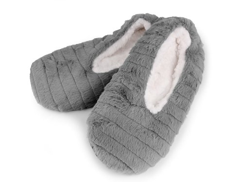 Dámske balerínky sú skvelé ako domáca obuv. Sú hebučké, [z vrchnej strany majú umelú kožušinu], vo vnútri je teplá chlpatá podšívka, ktorá verne imituje vlnu. Protišmykové gumové bodky na chodidle zabránia pošmyknutiu. Upozorňujeme zákazníkov, že zloženie na štítkoch sa môže líšiť, materiál je akryl, polyamid a polyester. [Vnútorná dĺžka pri veľkosti 35-38 je 23 cm, pri veľkosti 39-42 je 26 cm.]