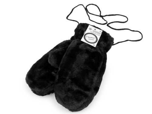 Dámske rukavice palčiaky z umelej kožušiny sú vo vnútri zateplené príjemným plyšovým kožúškom. Sú ozdobené štítkom z umelej kože. Hodí sa do zimy, ruky perfektne zahrejú. Idú navzájom spojiť priloženú šnúrou dlhú 1,1 metra, ktorá sa priviaže k pútkom pri okraji rukavíc. Slúži na prevlečenie rukávmi, aby sa rukavice nestratili. Šírka je meraná na voľne položených rukaviciach uprostred (bez palca). Rukavice môžu mať zlé štítky, skutočné zloženie je polyester.