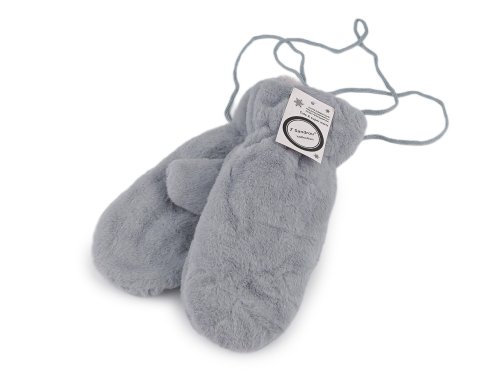 Dámske rukavice palčiaky z umelej kožušiny sú vo vnútri zateplené príjemným plyšovým kožúškom. Sú ozdobené štítkom z umelej kože. Hodí sa do zimy, ruky perfektne zahrejú. Idú navzájom spojiť priloženú šnúrou dlhú 1,1 metra, ktorá sa priviaže k pútkom pri okraji rukavíc. Slúži na prevlečenie rukávmi, aby sa rukavice nestratili. Šírka je meraná na voľne položených rukaviciach uprostred (bez palca). Rukavice môžu mať zlé štítky, skutočné zloženie je polyester.