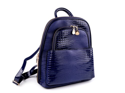 Elegantný mestský batoh, ktorý ľahko premeníte na crossbody kabelku skvele doplní váš outfit. Vďaka syntetického materiálu s imitáciou krokodílej kože, má batoh punc kvality aj vkusnej originality. Je ideálny na nosenie do mesta, kancelárie aj na výlety. Povrch plecniaka je lesklý v kombinácii s matom. Hlavné vrecko je na zips, je veľmi priestranné. Je rozdelená prepážkou na dva oddiely, v prepážke je umiestnené vrecko na zips. Nechýba ani vnútorné vrecko na zips na drobnosti či mobil a vrecko na uloženie plochých predmetov. Na prednej strane batohu sú 2 vrecká, jedno sa uzatvára na zips, druhé má skryté magnetické zapínanie. Na zadnej strane batohu je umiestnené malé ploché vrecko na zips. Ucho je pevné, krátke do ruky alebo na zavesenie. Popruhy sú dostatočne dlhé s možnosťou regulácie pre pohodlné používanie počas celého dňa. Sú podšité látkou. Hore sú popruhy v kovových prievlakoch, ktoré slúžia na pretiahnutie popruhov na nosenie krížom ako kabelka. Dno plecniaka je opatrené kovovými klincami, ktoré ho chránia pred poškodením.