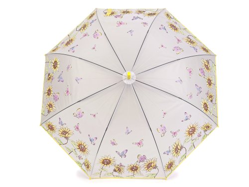 Priesvitný dáždnik s farebnou potlačou pristane dievčatám aj ženám. Dáždnik je vystreľovací, konštrukciu má z kovového drôtu a pružných lamiel, tvorí osem polí. Vďaka nim je veľmi pevný, neohne sa ani za najväčšieho nečasu. Klasická tyč je zakončená pevnou rukoväťou. Hĺbka dáždnika je 27 cm.