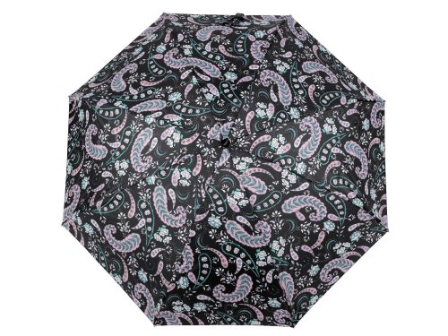 Skladací dáždnik [s poťahom s paisley motívom] je vďaka hliníkovej konštrukcii a malej veľkosti ľahký a skladný, pohodlne sa vám zmestí do kabelky. Konštrukcia je tvorená ôsmimi poľami. Rukoväť dáždnika je plastová a opatrená pútkom. Zapínanie je klasické na suchý zips. Súčasťou dáždnika je ochranný obal, ktorý sa taktiež zapína na suchý zips. Hĺbka dáždnika je 20 cm. Celková dĺžka je 54 cm. Dĺžka zloženého dáždnika je [19 cm].