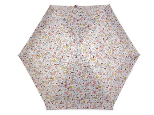 Dámsky mini skladací dáždnik s kvetinovým motívom je elegantným a praktickým doplnkom do každej kabelky. Vyniká svojim jemným vzorom kvetín, ktorý dodá vášmu outfitu sviežosť a originalitu. Vďaka malej veľkosti je ľahký a skladný. Konštrukcia dáždnika je tvorená 6 poľami, vnútorná strana dáždnika je čierna. Rukoväť dáždnika je plastová, opatrená pútkom. Súčasťou dáždnika je ochranný obal. Dáždnik je vybavený UV filtrom, ochráni nielen pred dažďom, ale aj pred škodlivým slnečným žiarením. Hĺbka dáždnika je 18 cm. Celková dĺžka je 52 cm. Dĺžka zloženého dáždnika je 18 cm.