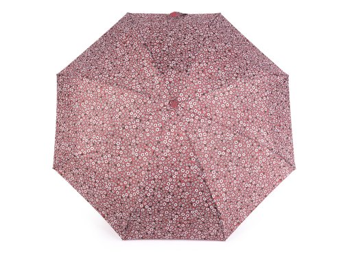 Dámsky skladací dáždnik s potlačou [kvetov]. Dáždnik je veľmi skladný - zložený meria iba [18-19 ]cm, pohodlne sa zmestí do kabelky. Konštrukcia je tvorená ôsmimi poľami. Obstojí aj v silnom vetre, pružné lamely zaisťujú vysokú pevnosť a stabilitu. UV filter vás ochráni pred slnečným žiarením. Rukoväť dáždnika je plastová, opatrená pútkom. Súčasťou dáždnika je ochranný obal. Hĺbka dáždnika je 20 cm. Celková dĺžka je 55 cm. Dĺžka zloženého dáždnika je [18-19 cm.]