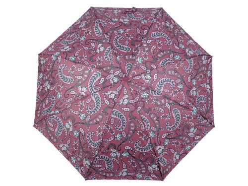 Skladací dáždnik [s poťahom s paisley motívom] je vďaka hliníkovej konštrukcii a malej veľkosti ľahký a skladný, pohodlne sa vám zmestí do kabelky. Konštrukcia je tvorená ôsmimi poľami. Rukoväť dáždnika je plastová a opatrená pútkom. Zapínanie je klasické na suchý zips. Súčasťou dáždnika je ochranný obal, ktorý sa taktiež zapína na suchý zips. Hĺbka dáždnika je 20 cm. Celková dĺžka je 54 cm. Dĺžka zloženého dáždnika je [19 cm].