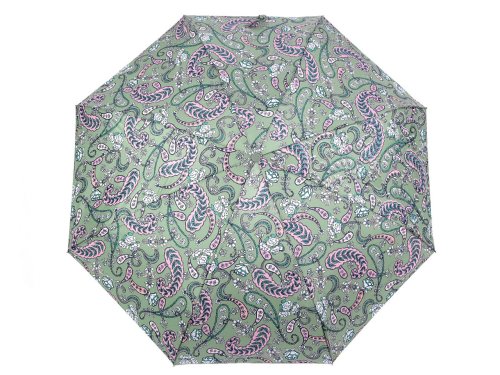 Skladací dáždnik [s poťahom s paisley motívom] je vďaka hliníkovej konštrukcii a malej veľkosti ľahký a skladný, pohodlne sa vám zmestí do kabelky. Konštrukcia je tvorená ôsmimi poľami. Rukoväť dáždnika je plastová a opatrená pútkom. Zapínanie je klasické na suchý zips. Súčasťou dáždnika je ochranný obal, ktorý sa taktiež zapína na suchý zips. Hĺbka dáždnika je 20 cm. Celková dĺžka je 54 cm. Dĺžka zloženého dáždnika je [19 cm].