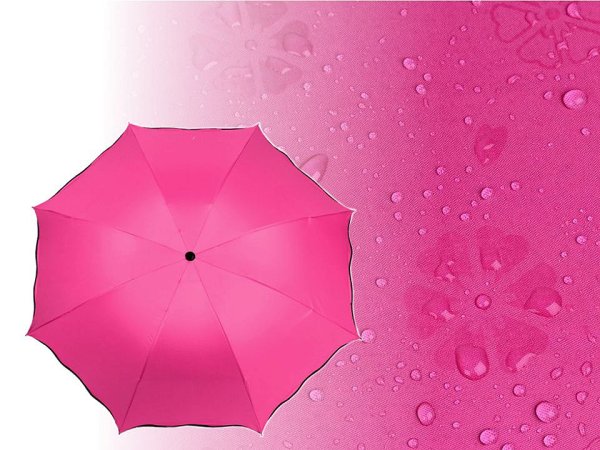 Dámsky skladací dáždnik s unikátnym efektom! Trik spočíva v tom, že keď je dáždnik suchý, má jednofarebný poťah. Pri kontakte s vodou sa na poťahu ako kúzlom objaví nádherný kvetinový vzor. Dáždnik je skladný, pohodlne sa zmestí do kabelky. Obstojí aj v silnom vetre, pružné lamely zaisťujú vysokú pevnosť a stabilitu. UV filter vás ochráni pred slnečným žiarením. Rukoväť dáždnika je plastová, opatrená pútkom. Konštrukcia dáždnika sa skladá z ôsmich polí. Súčasťou dáždnika je ochranný obal. Hĺbka dáždnika je 18 cm. Celková dĺžka je 65 cm. Dĺžka zloženého dáždnika je 24 cm.