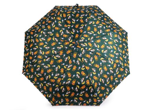 Plne automatický skladací dáždnik je vyrobený z kvalitného materiálu. Na poťahu, ktorý má UV filter, je motív psíkov s dáždnikmi. Dáždnik má vystreľovací/zostreľovací mechanizmus. Roztvorí aj zavrie sa stlačením tlačidla so šípkou hore alebo dole. Rukoväť dáždnika je plastová, opatrená pútkom. Konštrukcia dáždnika sa skladá z ôsmich polí. Súčasťou dáždnika je ochranný obal. Hĺbka dáždnika je 19 cm. Celková dĺžka je 56 cm. Dĺžka zloženého dáždnika je 29 cm.