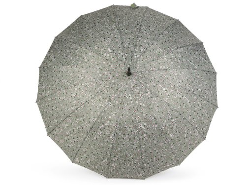 Veľký dámsky vystreľovací dáždnik so vzorovaným poťahom drobných kvetov vás spoľahlivo ochráni pred nepriazňou počasia. Skladá sa zo 16 výsečí, vďaka ktorým sa dáždnik radí medzi luxusné kúsky. Konštrukcia je vyrobená z pružných lamiel zaisťujúcich vysokú pevnosť a stabilitu. UV filter vás ochráni pred slnečným žiarením. Dáždnik má klasickú tyč zakončenú pevnou rukoväťou. Hĺbka dáždnika je 26 cm.