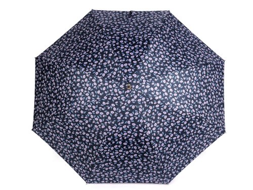 Veľký dámsky dáždnik s potlačou malých kvetov je vystreľovací, konštrukciu má z kovového drôtu a pružných lamiel, ktoré tvoria osem polí.