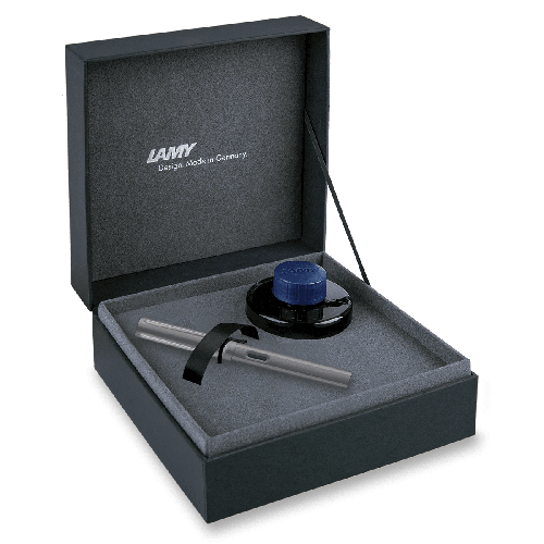 Darčeková kazeta obsahuje:, * plniace pero LAMY AL-star Graphite, * modročierny fľaštičkový atrament LAMY T 52, * voucher Akadémia písania
