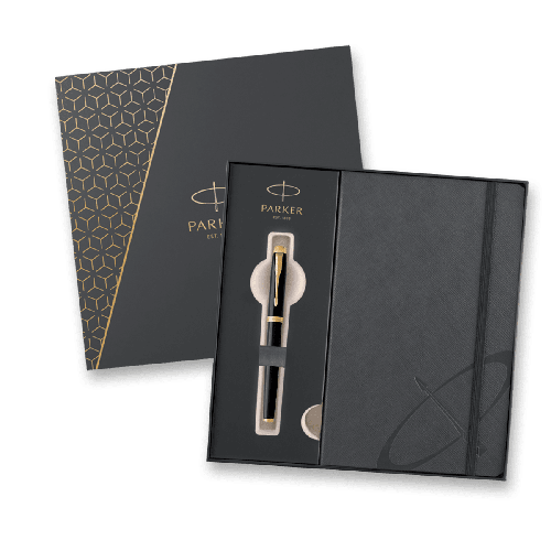 Darčeková kazeta obsahuje:, * roller Parker IM Black GT, * šedý zápisník Parker, * voucher Akadémia písania