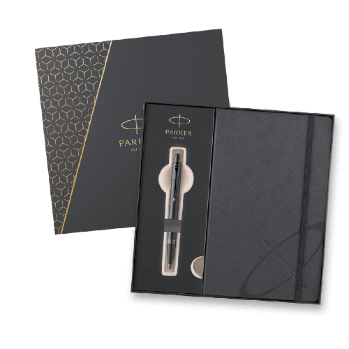 Darčeková kazeta obsahuje:, * guličkové pero Parker IM Monochrome Titanium, * šedý zápisník Parker, * voucher Akadémia písania,