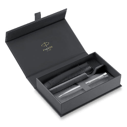 Darčeková kazeta obsahuje:, * guličkové pero Parker Urban Metro Metallic CT, * čierne PU puzdro Parker, * voucher Akadémia písania
