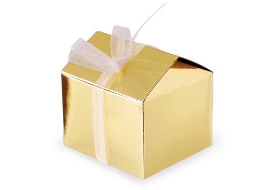 Darčeková krabička domček s lesklým metalickým povrchom poteší každého obdarovaného. Po zložení ju môžete obviazať monofilovou stuhou, ktorá je súčasťou balenia. Krabičku môžete použiť na malé darčeky, ako je kozmetika, bižutéria, sviečka, balené pralinky a pod). Oceníte ju aj na prípravu adventného kalendára. Krabičku dodávame v rozloženom stave (20,5 x 32,7 cm). Zložíte ju jednoducho podľa vyznačených ohýbacích krajov. Krabička nemá atest na potraviny, pochúťky a iné maškrty odporúčame vložiť zabalené v sáčku.