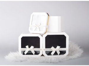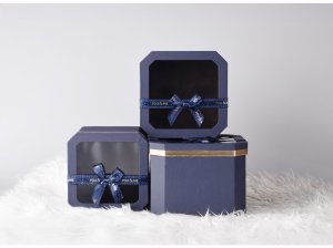 Táto sada troch hranatých darčekových krabičiek s vekom a farebným dizajnom je ideálna na balenie kozmetiky, doplnkov, sladkostí i malých darčekov. Krabičky rôznych veľkostí sa dajú zasunúť do seba, takže šetria miesto. Elegantné, praktické a znovu použiteľné. Tovar je dodávaný v mixe a nie je možné vybrať konkrétne prevedenie.