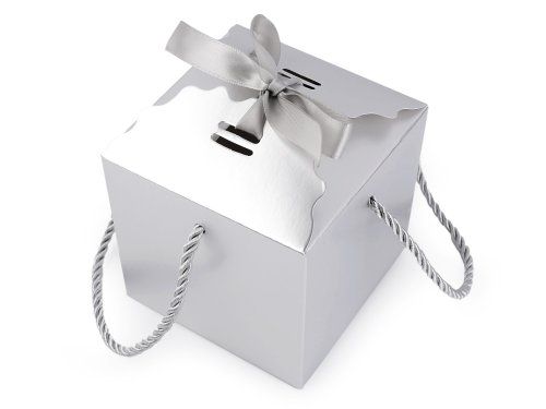 Darčeková krabička s pútavým metalickým povrchom poteší každého obdarovaného. Môžete ju použiť na malé darčeky, je k nej priložená saténová stuha na priviazanie a dve ucha zo saténovej krútenej šnúry. Krabičku dodávame v rozloženom stave (20 x 21,5 cm). Zložíte ju jednoducho podľa vyznačených ohýbacích krajov. Krabička nemá atest na potraviny, pochúťky a iné maškrty odporúčame vložiť zabalené v sáčku.