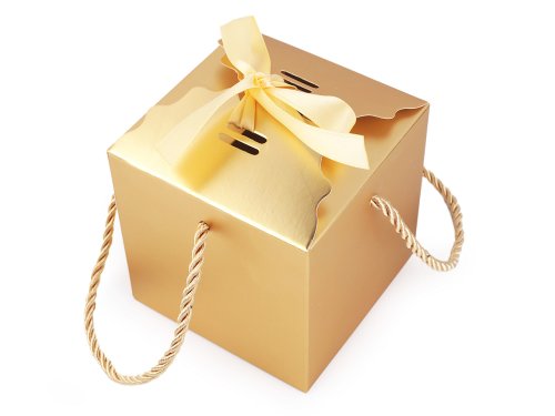 Darčeková krabička s pútavým metalickým povrchom poteší každého obdarovaného. Môžete ju použiť na malé darčeky, je k nej priložená saténová stuha na priviazanie a dve ucha zo saténovej krútenej šnúry. Krabičku dodávame v rozloženom stave (20 x 21,5 cm). Zložíte ju jednoducho podľa vyznačených ohýbacích krajov. Krabička nemá atest na potraviny, pochúťky a iné maškrty odporúčame vložiť zabalené v sáčku.