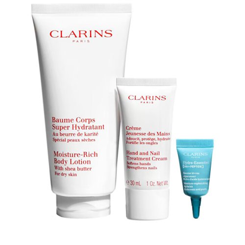 Hydratačné telové mlieko pre suchú pokožku (Moisture Rich Body Lotion) 200 ml Krém na ruky a nechty (Hand and Nail Treatment) 30 ml Hydratačný balzam na pery Hydra-Essentiel (Moisture Repairing Lip Balm) 3 ml