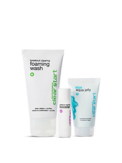 Čistiaca pena pre problematickú pleť Clear Start Breakout Clearing (Foaming Wash) 75 ml Hydratačné želé pre mastnú pleť ClearStart (Cooling Aqua Jelly) 25 ml Pleťové sérum pre aknóznu pleť Clear Start (Breakout Clearing Booster) 1