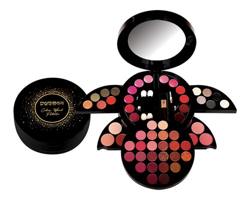 36 očných tieňov Rúž 12 x Tvárenka 3 x Rozjasňovač 2 x Púder 1 x Aplikátror na očné tiene 2 x Štetec na pery 1 x Štetec 1 x Zrkadlo 1 x