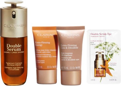 Intenzívne sérum proti starnutiu pleti (Double Serum Complete Age Control Concentrate) 50 ml Spevňujúci a rozjasňujúci denný krém Extra Firming Energy 15 ml Krém na krk a dekolt Extra Firming (Neck & Decollete Careml Serum) 0,9 ml