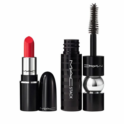 Objemová a predlžujúca riasenka Black (Macstack Mini Mascara) 8 ml Lesklý rúž Lustreglass Cockney (Lipstick) 3 g
