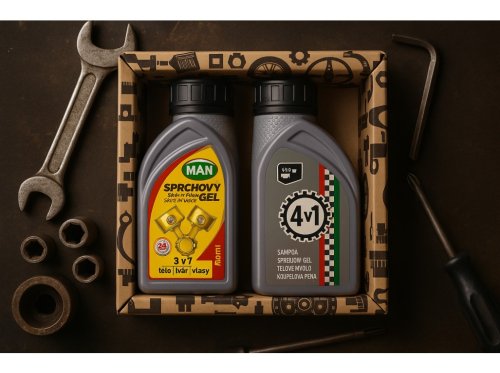 Darčekový kozmetický balíček obsahuje sprchový gél 250 ml „for men“ a sprchový gél 250 ml 4v1 – veľmi jemné ošetrujúce sprchové gély pre mužov vhodné aj na umývanie vlasov.