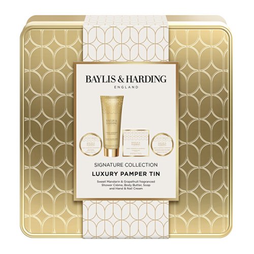 Ošetrujúca mini sada pre celé telo Rozmaznávajte pokožku celého tela luxusnými produktmi počas každodenného umývacieho rituálu! Vôňa sladkej mandarínky, grapefruitu a jazmínu navodí tú správnu atmosféru a Vy si môžete užívať chvíle relaxácie. Sprchový krém a tuhé mydlo jemne čistia pokožku tela i rúk, zatiaľ čo telové maslo a krém na ruky dodajú pokožke potrebnú hydratáciu a výživu s výsledkom hladkej a nádherne prevoňanej pokožky. Ikonická kolekcia Sweet Mandarin & Grapefruit spája luxusnú starostlivosť s nadčasovým Art Deco štýlom. Elegantná kombinácia bielej, zlatej a geometrických vzorov podčiarkuje slávnostnú atmosféru tejto kolekcie. Nezameniteľná vôňa so sviežimi tónmi citrusov a jazmínu poteší zmysly a premení každodennú starostlivosť na malý rituál. Vlastnosti: • čistia, hydratujú a vyživujú pokožku • s dlhotrvajúcou ovocnou vôňou • dobre sa vstrebávajú do pokožky • na starostlivosť o pokožku celého tela • balené v plechovej dóze s ornamentami Sprchový krém Nádherne hladký a bohatý sprchový krém je šetrný k pokožke, účinne čistí a vytvára intenzívny. Zanechá pokožku hydratovanú a jemne prevoňanú. Použitie: Naneste na vlhkú pokožku, napeňte a dôkladne opláchnite. Krém na rukyVyživujúci krém na ruky dodá pokožke potrebnú hydratáciu a úľavu od pocitu suchosti. Zanecháva ju hebkú, vláčnu a príjemne prevoňanú . Použitie: Naneste na suchú a čistú pokožku, vmasírujte, kým sa úplne nevstrebe. Telové masloTelové maslo s glycerínom a bambuckým maslom intenzívne hydratuje, vyživuje a regeneruje pokožku celého tela. Svojím ošetrujúcim zložením skvele dopĺňa rad produktov s vôňou citrusov a jazmínu . Použitie: Po kúpeli naneste na celé telo a dôkladne rozotrite a vmasírujte do pokožky. Tuhé mydloTuhé mydlo odstraňuje nečistoty z pokožky rúk bez nepríjemného vysušovania. Vytvára bohatú penu a zanecháva dlhotrvajúcu vôňu . Použitie: Premiešajte vo vlhkých dlaniach, napeňte a opláchnite. Doplňujúce informácie:• Vegan & Cruelty Free