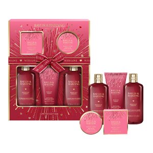 Táto nádherná darčeková súprava je symbolom luxusu vo Vašej kúpeľni. Pripravte sa na jedinečný zážitok a rozmaznávajte svoju pokožku pomocou tejto exkluzívnej kolekcie produktov, ktorá vonia ako práve upečený čerešňový koláč s plátkami mandlí a kvapkou likéru. S prichádzajúcimi Vianocami je to tiež dokonalý darček pre tých, ktorí si zaslúžia chvíle odpočinku a starostlivosti vo víre sviatočného zhonu. S touto sadou pod vianočným stromčekom urobíte niekomu naozaj šťastné Vianoce. Kolekcia Midnight Cherry s vôňou sladkokyslej čerešne, jemných mandlí a kvapky likéru v sebe spája sviatočnú atmosféru a hrejivé čaro zimných večerov. Výrazný dizajn v tónoch červenej a ružovej so zlatými detailmi dodáva každému produktu slávnostný nádych – ideálny pre chvíle rozmaznávania alebo ako luxusný darček pod stromček. Vlastnosti: • čistia, hydratujú a starajú sa o pokožku celého tela • s dlhotrvajúcou, sviatočnou vôňou čerešní, mandlí a likéru • dobre sa vstrebávajú do pokožky • v elegantnom, luxusnom balení Sprchový gélOsviežujúci sprchový gél vytvára bohatú penu, ktorá jemne čistí pokožku celého tela. Zanechá ju hebkú na dotyk a krásne prevoňanú sviatočnou vôňou. Použitie: Naneste na vlhkú pokožku, napeňte a opláchnite. Sprchový krémTento nádherne jemný umývací prípravok s krémovou textúrou šetrne čistí pokožku celého tela. Vytvára bohatú penu, ktorá zanechá pokožku tela hydratovanú a jemne prevoňanú . Použitie: Naneste na vlhkú pokožku, vytvorte krémovú penu a dôkladne opláchnite. Mlieko na telo a rukyVyživujúce mlieko dodáva pokožke tela potrebnú hydratáciu a úľavu od pocitu suchosti. Zanecháva ju hebkú, vláčnu a prevoňanú vôňou čerešní, mandlí a liké ru. Použitie: Naneste na suchú a čistú pokožku a vmasírujte, kým sa úplne nevstrebe. Telové masloTelové maslo dodá pokožke tela potrebnú hydratáciu, intenzívnu výživu a zároveň uľaví od pocitu suchosti. Zanechá ju hebkú, vláčnu a príjemne prevoňanú ovocnými tónmi. Použitie: Naneste na suchú a čistú pokožku. Vmasírujte, kým sa úplne nevstrebe. Tuhé mydloTuhé mydlo odstraňuje nečistoty z pokožky rúk bez nepríjemného vysušovania. Vytvára bohatú penu a zanecháva dlhotrvajúcu, sviežu vôňu . Použitie : Premiešajte vo vlhkých dlaniach, napeňte a opláchnite. Doplňujúce informácie:• Vegan & Cruelty Free