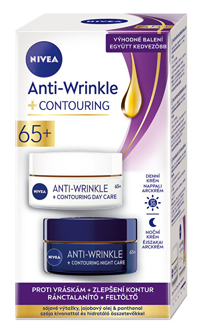 Sada obsahuje: Denný krém na zlepšenie kontúr 65+ SPF 30 (Anti-Wrinkle + Contouring) 50 ml Nočný krém na zlepšenie kontúr 65+ (Anti-Wrinkle + Contouring) 50 ml