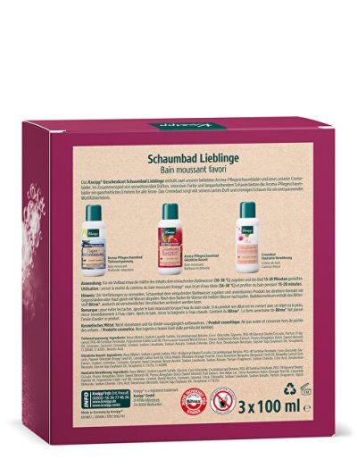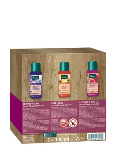 Darčeková sada Kneipp Šťastné kúpanie poteší kamarátku, mamičku, babičku aj pani učiteľku. V sade nájdete 3 rôzne peny plné prírodných olejov a výťažkov. Počas kúpeľa rozmaznávajú pokožku celého tela, aby bola zamatovo hebká. Použité kombinácie esenciálnych olejov pomôžu zmierniť stres či pocity napätia a zlepšiť náladu. Po teplom voňavom kúpeli sa bude krásne zaspávať. Pena Hlboké uvoľnenie obsahuje pačuli, extrakty z tropického dreva a benzoovej živice. Kúpeľ s penou Staré dobré časy vyčaruje úsmev na tvári vďaka esenciálnemu oleju z červeného maku a konope. Tretia fľaštička využíva účinky aj vône mandlí, v pene Mandľové kvety nájdete ošetrujúce mandľový olej a výťažky zo sladkých mandlí, ktoré sa starajú o citlivú suchú pokožku. Výrobky sú bez mikroplastov, parafínov, silikónov a minerálnych olejov. Súprava obsahuje: