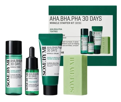 Exfoliačné pleťové tonikum AHA BHA PHA 30 Days (Miracle Toner) 30 ml Upokojujúce a exfoliačné pleťové sérum AHA BHA PHA 30 Days (Miracle Serum) 10 ml Multifunkčný pleťový krém 30 Days (Miracle Cleansing Bar) 30 g