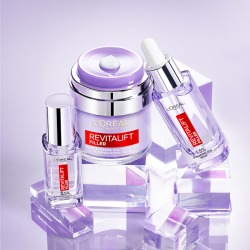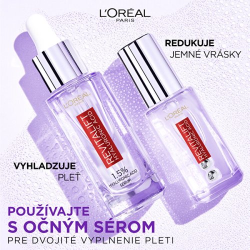 Sérum proti vráskam s 1,5% čistej kyseliny hyalurónovej Revitalift Filler (Hyaluronic Acid Serum) 30 ml Očné sérum s 2,5% kyselinou hyalurónovou Revitalift Filler (Eye Serum) 20 ml