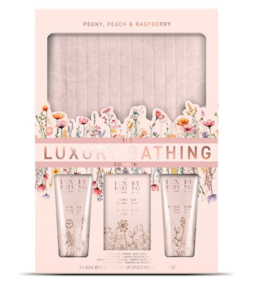 Telový krémVyživujúci krém dodáva pokožke potrebnú hydratáciu a úľavu od pocitu suchosti, zanecháva ju hebkú, vláčnu a príjemne prevoňanú.Použitie : Naneste na suchú a čistú pokožku a vmasírujte kým sa úplne nevstrebe. Krém na rukyKrém na ruky s glycerínom a parafínom intenzívne hydratuje a zvláčňuje pokožku. Chráni ju pred chladom, vetrom a vysúšaním. Použitie: Aplikujte na suché a čisté ruky. Vmasírujte do pokožky, kým sa krém úplne nevstrebe. Perličky do kúpeľa Voňavé perličky dodajú kúpeľu nový rozmer. Prevonia celý kúpeľ a zanechajú pokožku hebkú a hladkú na dotyk. Vďaka obsahu urey sú perličky vhodné aj pre citlivú pokožku . Použitie: Nasypte do teplého vodného kúpeľa, ponorte sa do zmyselnej vône a relaxujte. Radostná kolekcia Floral Finesse, inšpirovaná kvetmi anglickej záhrady, ponúka produkty v nežnom, elegantnom dizajne. Jemné kvietky v kombinácii s púdrovo ružovou farbou a zlatými detailmi zdobia darčekové balenia vytvárajúce túto nadčasovú kolekciu. Ovocná vôňa mandarínok a malín s kvetinovými tónmi pivonky a ruže, zakončená teplým základom sladkých broskýň osloví všetky ženy 40+. Vegan & Cruelty-Free.