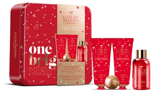 Táto nádherná darčeková sada produktov starostlivosti o telo rozmaznáva vašu pokožku počas každodenného umývacieho rituálu. Vianočná kolekcia s vôňou sladkej vanilky a praliniek zahalí telo dávkou relaxácie a odpočinku. Prevonia pokožku tela a zanechá ju hebkú a hladkú na dotyk. Dodajte tohtoročným sviatkom nádych kúzla s vianočnou kolekciou Toasted Praline & Sweet Vanilla! Elegantný dizajn v červenej a zlatej farbe navodí tú správnu vianočnú atmosféru vo vašej kúpeľni. Spoločne s orieškovou vôňou praliniek a sladkej vanilky vytvára dokonalý sviatočný zážitok pre Vaše telo aj zmysly. Vlastnosti: • čistia, hydratujú a starajú sa o pokožku celého tela • s dlhotrvajúcou vôňou vanilky a praliniek • dobre sa vstrebávajú do pokožky • prevoňajú celé telo príjemnou vôňou • balené v plechovej dóze s vianočnými motívmi Aktívne látky: • glycerín - hydratuje a zvláčňuje pokožku Sprchový gélGel vytvára bohatú penu, zatiaľ čo uvoľňuje dlhotrvajúcu vôňu . Použitie: Aplikujte na vlhkú pokožku, vytvorte bohatú penu a potom dôkladne opláchnite. Telový krémVyživujúci krém dodáva pokožke potrebnú hydratáciu a úľavu od pocitu suchosti, zanecháva ju hebkú, vláčnu a príjemne prevoňanú.Použitie : Naneste na suchú a čistú pokožku a vmasírujte kým sa úplne nevstrebe. Krém na rukyKrém na ruky s glycerínom a parafínom intenzívne hydratuje a zvláčňuje pokožku. Chráni ju pred chladom, vetrom a vysúšaním. Použitie: Aplikujte na suché a čisté ruky. Vmasírujte do pokožky, kým sa krém úplne nevstrebe. Šumivé gule do kúpeľaSpríjemnite si kúpeľ s touto šumivou guličkou, ktorá prevonia vodný kúpeľ aj pokožku celého tela a navodí pocit pohody a relaxácie. Použitie: Ponorte do teplého kúpeľa a nechajte rozpustiť. Doplňujúce informácie:• Vegan & Cruelty Free