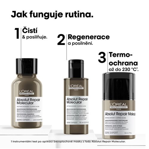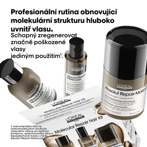 Šampón pre poškodené vlasy Absolut Repair Molecular (Professional Shampoo) 100 ml Sérum pre poškodené vlasy Absolut Repair Molecular (Professional Rinse-Off Serum) 75 ml Maska pre poškodené vlasy Absolute Repair Molecular (Profess00