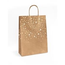 • taška z kraftového papiera s ozdobnými zlatými hviezdičkami