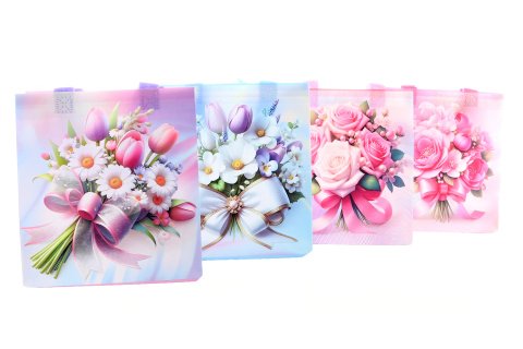 Darčeková taška s motívom kvetov. Materiál plast. Rozmery 23,5x22x11 cm. Výrobok nie je hračka