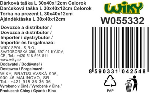 Darčeková taška o veľkosti L 30x40x12 cm Celorok. 4 farebné varianty: modrá, čierna, červená a biela.