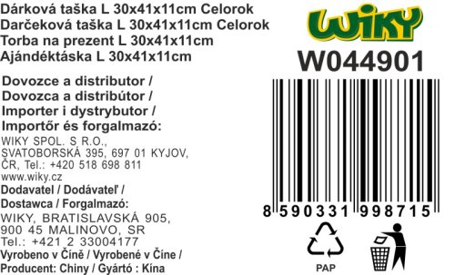 Darčeková taška o veľkosti L 30x41x11 cm Celorok. 4 druhy.