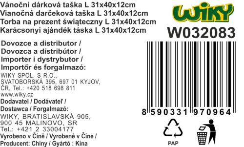 Darčeková taška o veľkosti L 31x40x12 cm Vianoce. 4 motívy.